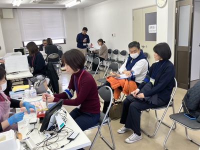 赤十字の職員の皆さまが手際よく受付や検査スペースを設営してくださり、見慣れた事務所があっという間に本格的な検査室へと様変わりしました。