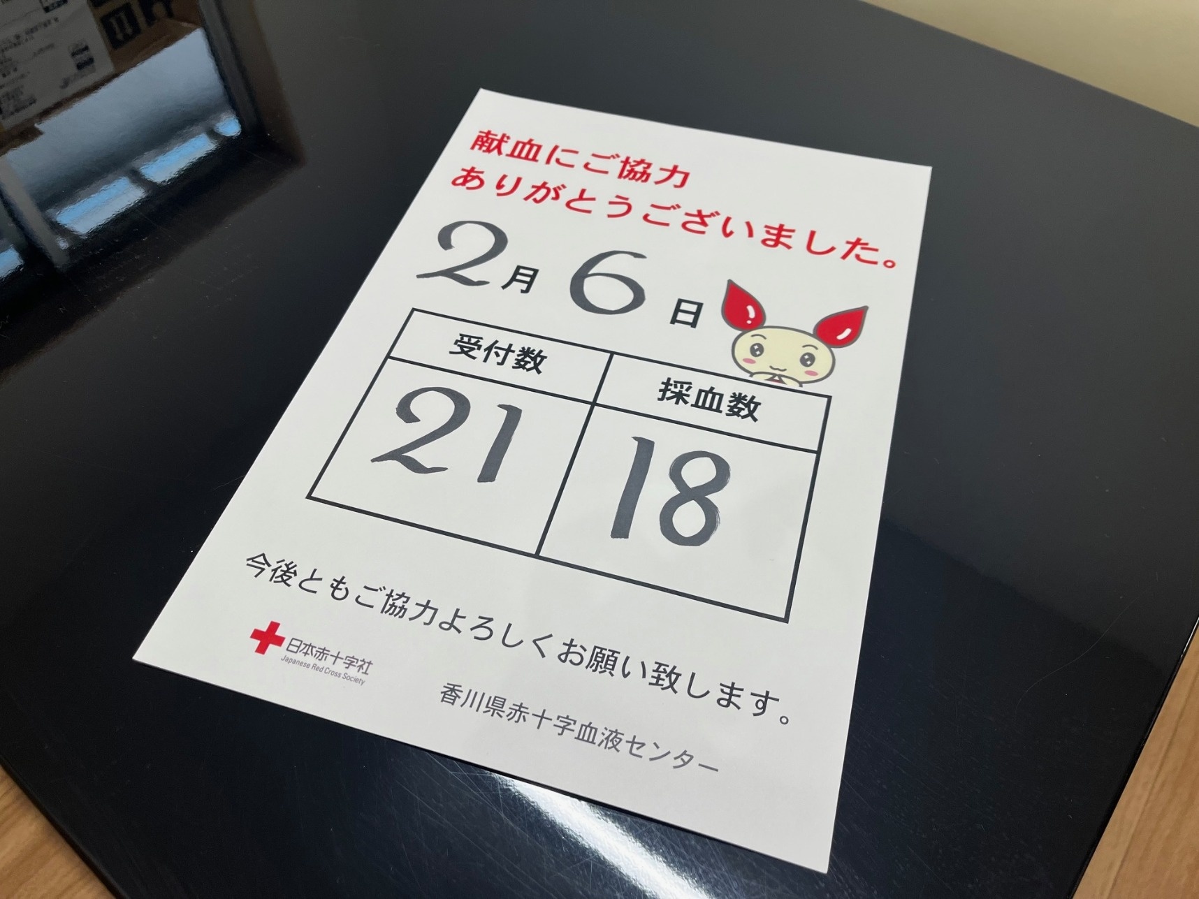 初めての試みでしたが、結果は受付21名、献血実施18名と、予想以上に多くの社員に参加していただきました!