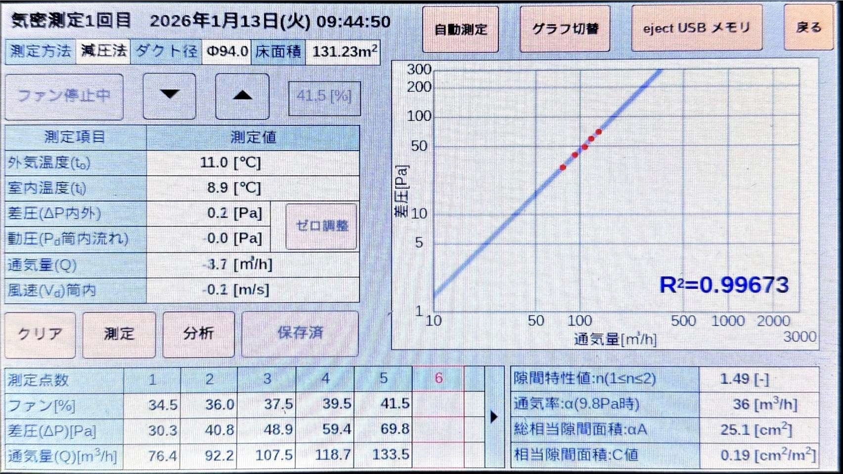 施工中のほうが穴がたくさんあって隙間が多いんじゃないの?と思いがちですがだいたい・・・2回目の数値が落ちます・・・。え?そうなん?と思いますよね。