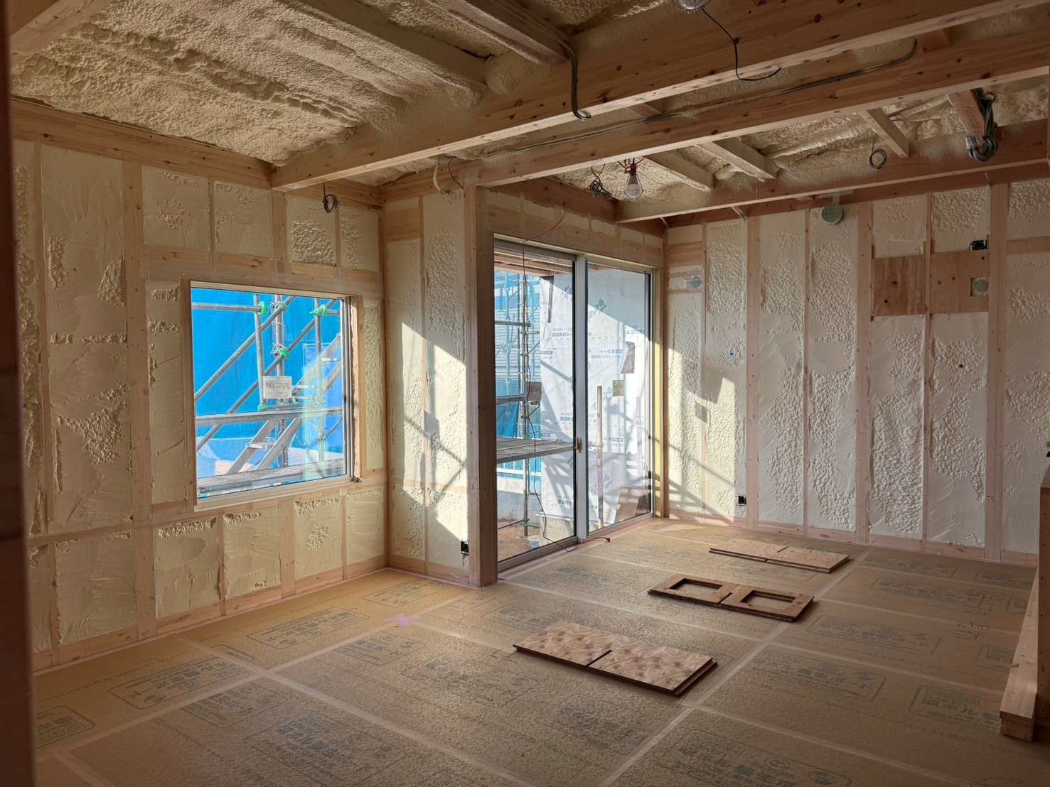 1回目は断熱材を施工して仕上げで閉じてしまう前に「隙間がないか」チェックするため。