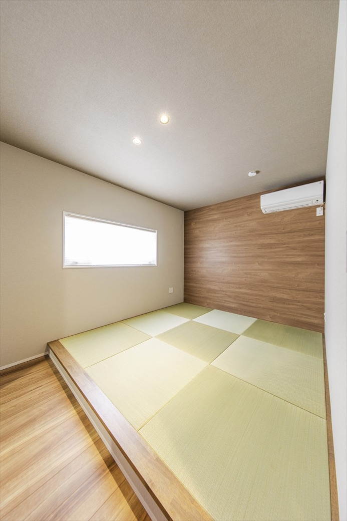 寝室は小上がりの畳敷き。ベッドがないので空間を広く使えます。
