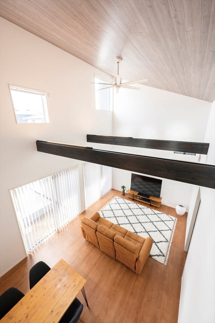第一種換気システムを採用。吹き抜けのファンで空気を循環させることで室温は常に快適。
