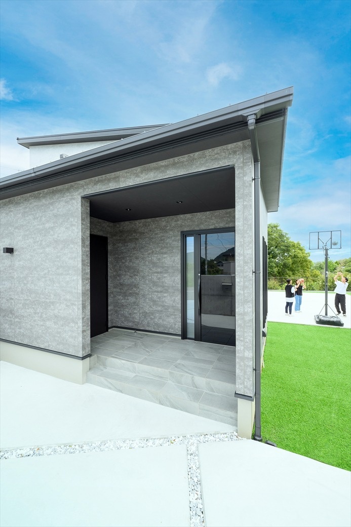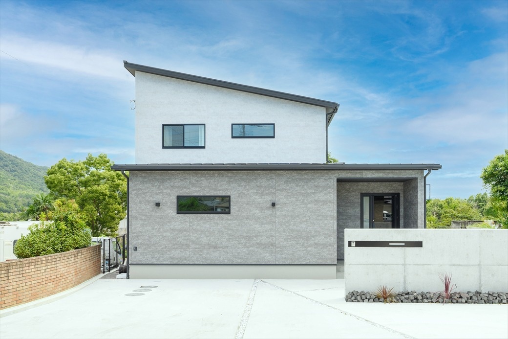 目地がアクセントになった外壁は「フィエルテ」の人気ライン。標準仕様の吹き付け断熱で夏も涼しく過ごせたそう。