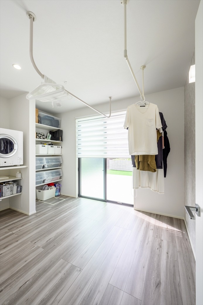 部屋干しできるランドリーで、花粉や虫など外干しのデメリットを解消。