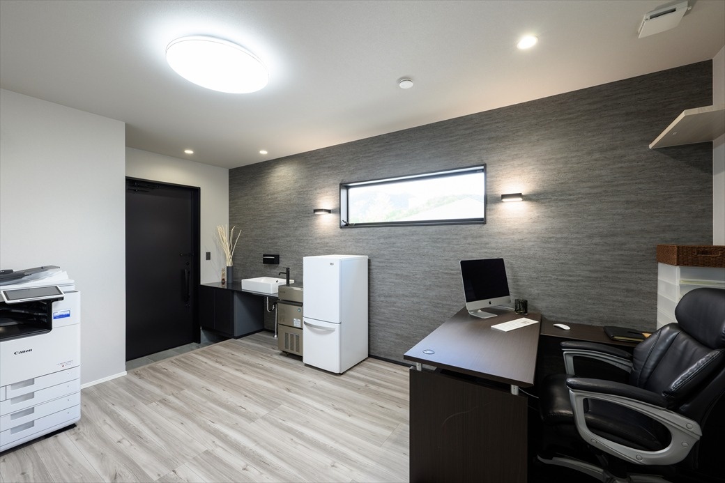 玄関に手洗いを設けた事務所スペース。リビングに隣接しているので、通勤時間がゼロになったとご主人もお喜びいただいています。