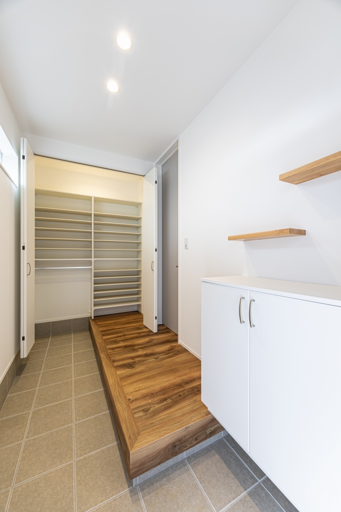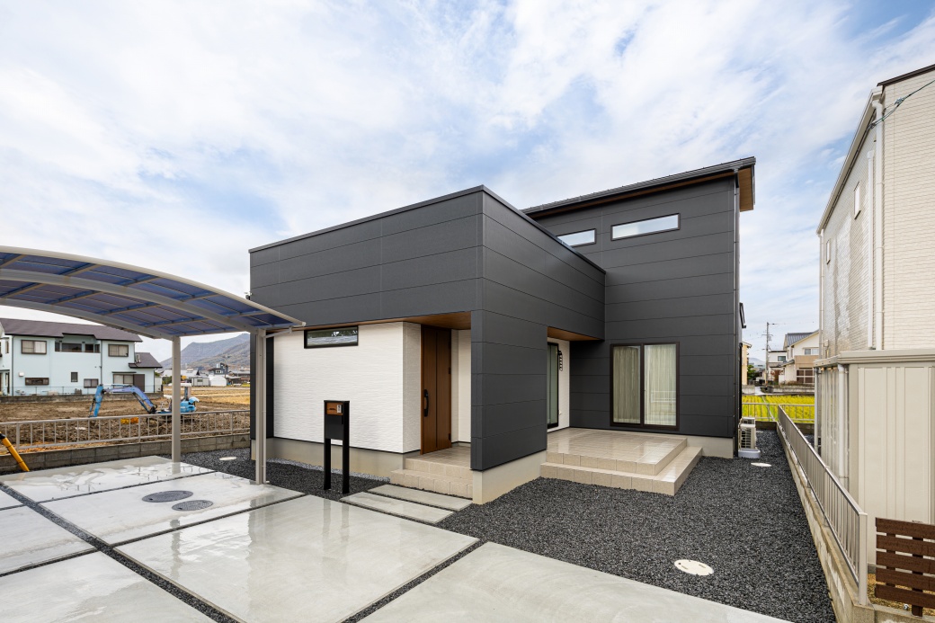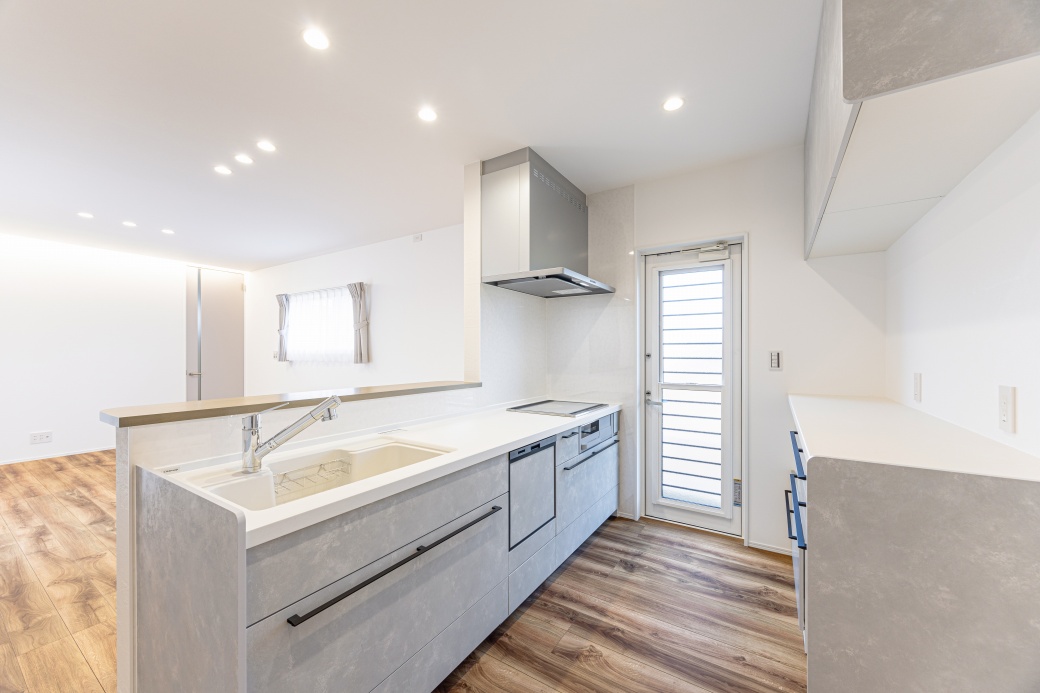 ホーム 家を建てる 施工事例 回遊動線のある 観音寺市回遊動線のあるシンプルナチュラルな家 ~29坪 3LDK 2階建て 外観:黒系 タイルデッキ 洗面収納 シューズクローク ナチュラル シンプルモダン 外観 シンプルなサイディングに、木目調の軒天や玄関ドアが映えるモダンな外観。タイルデッキでは、子供の水遊びやバーベキューなど家族の時間を楽しめます。 LDK 表情豊かなオーク材の床材をベースに、カーテンや室内ドア、キッチンなどをライトグレーでまとめた、あたたかみのある室内。 テレビ背面には柔らかな光が灯る間接照明を配し、空間のアクセントとしました。 キッチン 洗面室 トイレ 主寝室 1階にある主寝室から3帖のクローゼット、洗面室、LDKへと回遊できる動線。朝の身支度が効率良く行える便利な間取りです。 洋室 2部屋ともに、タモ材の勉強机と収納棚を造作。 玄関 ~29坪 3LDK 2階建て 外観:黒系 タイルデッキ 洗面収納 シューズクローク ナチュラル シンプルモダン おすすめのタグから探す 平屋 インナーガレージ 3LDK 30~35坪 和モダン 屋上 2階建て 南欧 パントリー 二世帯住宅 勾配天井 吹抜 人気のタグ 家事室 スキップフロア シューズクローク 書斎 中庭 ロフト すべてのタグから探す