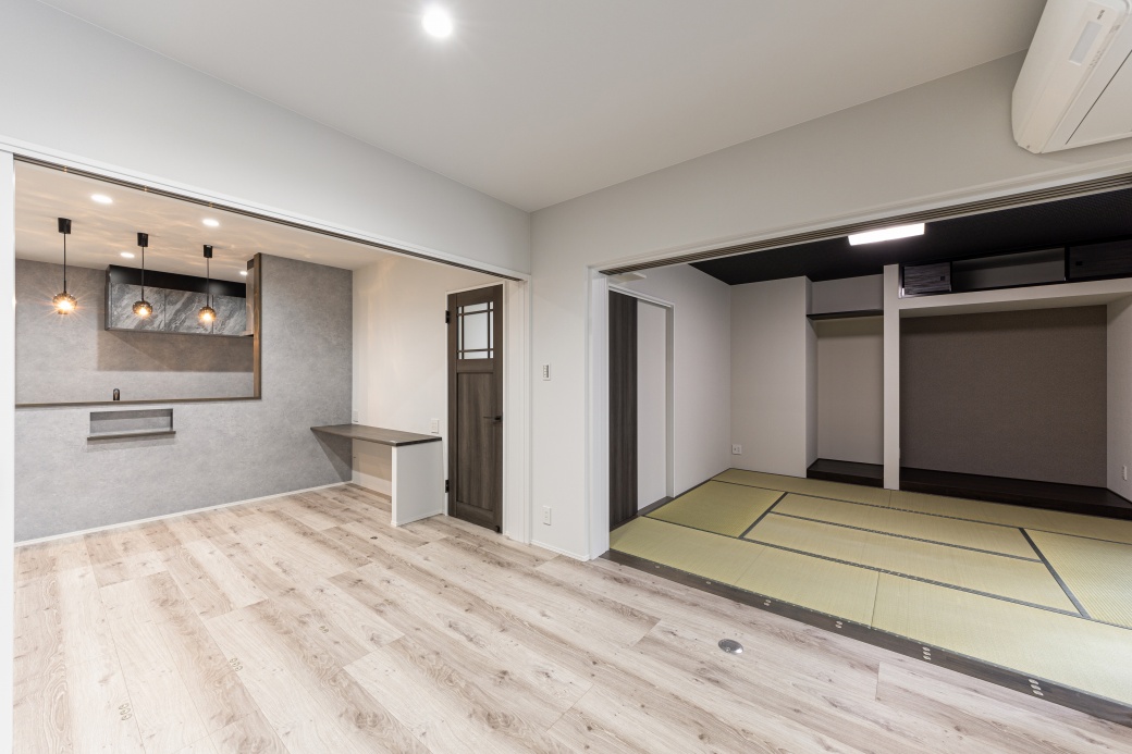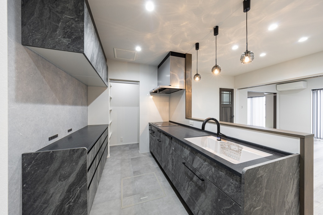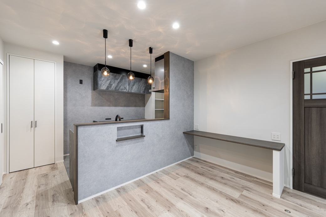 ホーム 家を建てる 施工事例 生活に寄り添う 三豊市生活に寄り添う可変性を備えた上品な家 41坪~ 5LDK~ 2階建て 家事室 洗面収納 シンプルモダン LDK 木目を基調にキッチンやリビングのアクセントクロスにライトグレーを取り入れた、上品なモダンインテリア。 リビング・ダイニング・和室にはそれぞれ仕切り戸を設置。 普段はオープンにして広々と空間を使い、来客時や在宅ワーク、子供の勉強時などは個別に仕切ることで、用途に合わせた使い方が可能です。 キッチン 散らかりがちな手元をさりげなく隠せる安心のカウンターキッチン。ペンダントライトの陰影が空間のアクセントとなっています。 和室 玄関から直接アクセスできる8帖と広々とした和室。床の間や編み模様の天井クロスを採用し、落ち着きのある空間に仕上がりました。 家事室 洗濯家事が効率よく行えるよう、洗面の隣に「干す・たたむ・しまう」が一ヶ所で完結する家事室を配置。 主寝室 様々な花をモチーフにしたアクセントクロスに、ブラケットライトのやわらかく灯る光が美しい主寝室。 ウォークインクローゼット 主寝室の隣には4帖の広々WCLを配置。衣類はもちろんバッグ・季節家電・スーツケースまで余裕をもって収納可能です。 41坪~ 5LDK~ 2階建て 家事室 洗面収納 シンプルモダン おすすめのタグから探す 平屋 インナーガレージ 3LDK 30~35坪 和モダン 屋上 2階建て 南欧 パントリー 二世帯住宅 勾配天井 吹抜 人気のタグ 家事室 スキップフロア シューズクローク 書斎 中庭 ロフト すべてのタグから探す