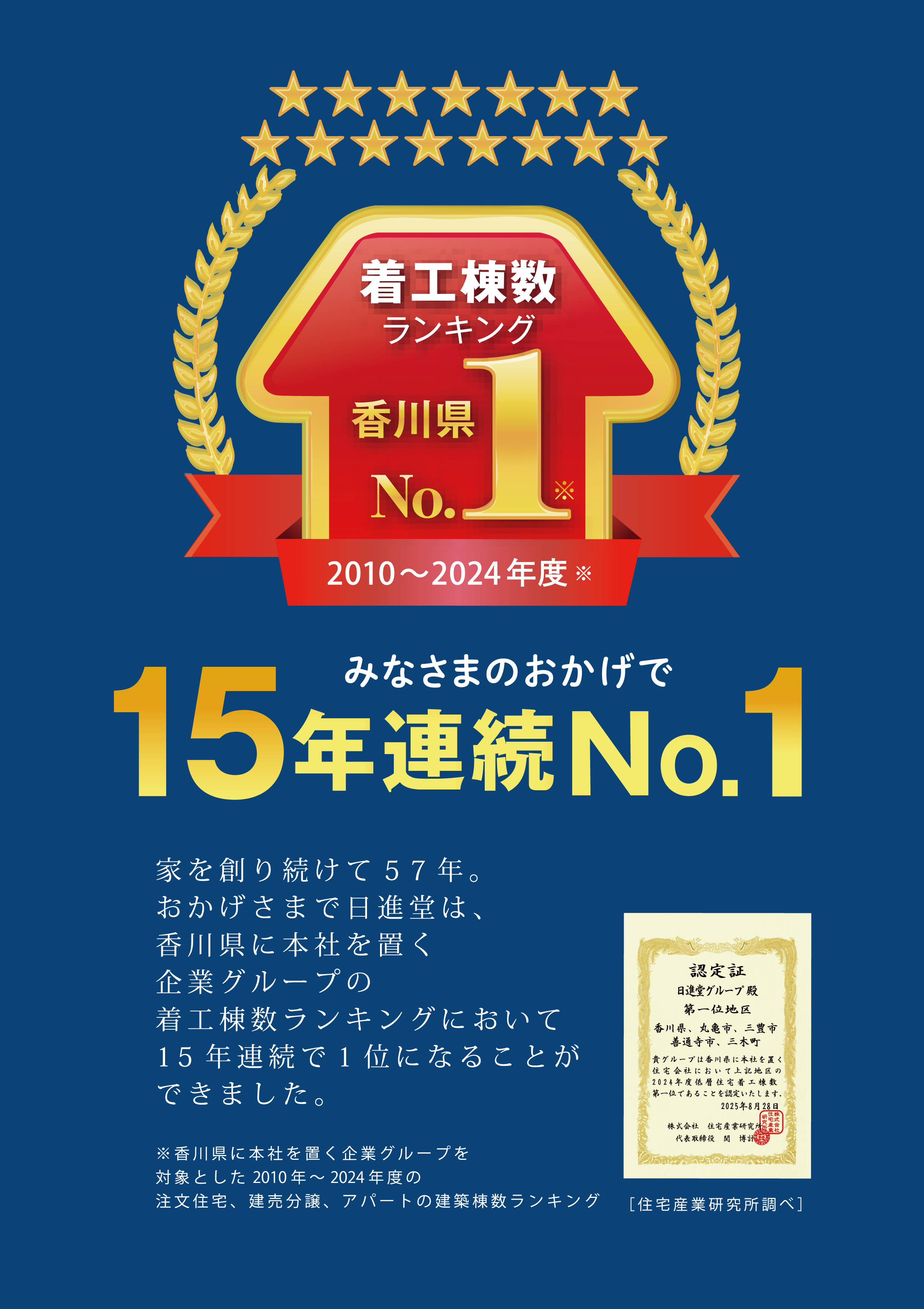 おかげさまで、15年連続で着工棟数No.1になりました!