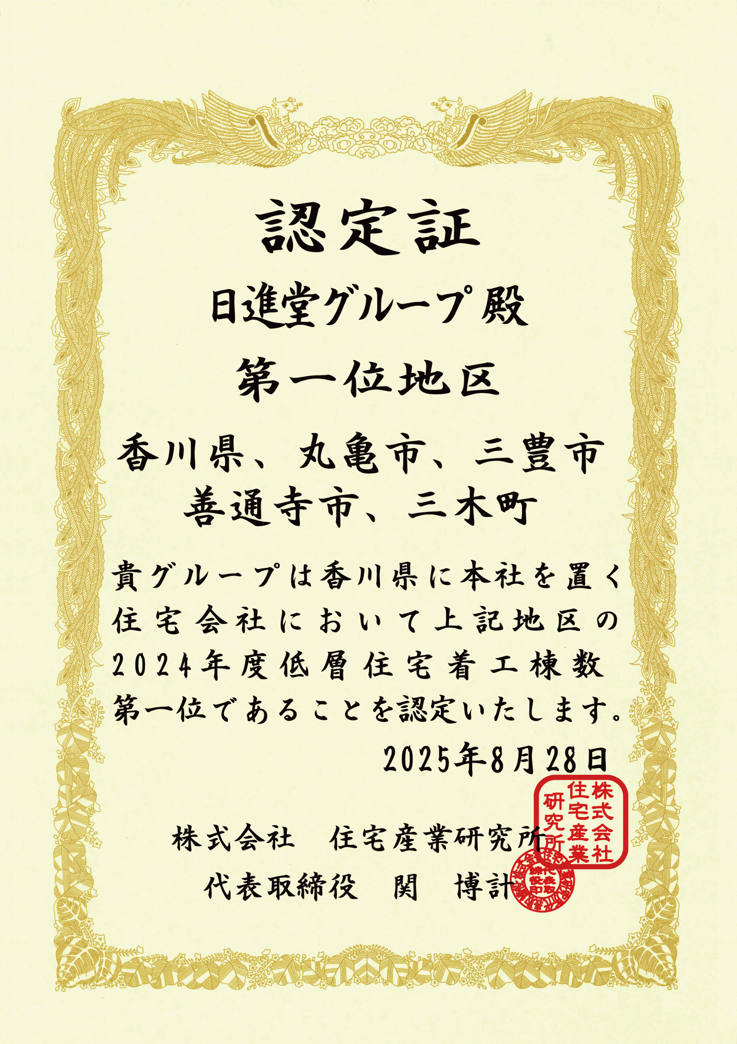 おかげさまで私たち日進堂グループは、地域ビルダーとして着工棟数ランキングで